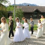 Alle zogen gemeinsam ins schön geschmückte Gotteshaus Christkönig. Conny Gaiser sprach im kindgerechten Erstkommunion-Gottesdienst mit den Kindern und hieß sie als neue Gäste am Tisch des Herrn willkommen: „Zu Jesus könnt ihr immer kommen, er wird immer für euch da sein. Wir freuen uns euch Mädchen und Buben künftig häufig hier in der Christkönigskirche zu sehen, der Tisch des Herrn ist nicht nur heute, sondern auch in den kommenden Jahren stets für euch gedeckt“. Am Montag besuchten dann alle beim traditionellen Kommunionausflug gemeinsam die Fraueninsel.