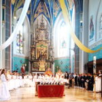 Voll besetzt mit den Gläubigen, Familien und Freunden der Kommunionkinder war die mit Blumen festlich geschmückte Pfarrkirche St. Nikolaus bei ihrer feierlichen Erstkommunion.17 Mädchen und zehn Buben traten erstmals an den Tisch des Herrn.
