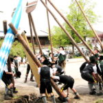 Erstmals in der Auer Ortsgeschichte ziert ein Maibaum dem künftigen Dorfplatz am historischen Trogerhaus. Nach tagelangem herrichten, bemalen und bewachen lupfte alleinigst die Auer Jugend das weißblauer Traditionsstangerl in das vorgegebene Erdloch. Unterstützende Anleitung gaben erfahrene Handwerkszimmerer und für die Sicherheit sorgte ein Kranfahrzeug.