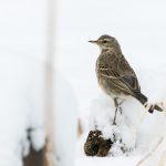 Der Wintereinbruch am Samstag hatte trotz Schneefall seine Reize. Auch wenn die Sicht deutlich beschränkt und auch die Temperatur ungemütlich war, zeigte sich vor dem Turm sehr viel Leben. Vor allem Rohrammern, Bachstelzen und Bergpieper waren eifrig auf Nahrungssuche und auch die Balz hat schon begonnen.