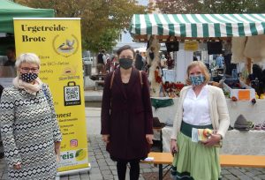 Elke Ott (LAG Traun-Alz-Salzach), Irmi Prankl (Öko-Modellregion Hochries-Kampenwand-Wendelstein) und Katharina Voggenauer (Wirtschaftsförderstelle Landratsamt Rosenheim) auf der Schmankerlstraße. Foto: LAG Chiemgauer-Seenplatte