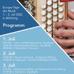 Am Samstag wird das Altöttinger Stadtzentrum am Tag der Laienmusik von Musik durchflutet. Stündlich wechseln sich die Darbietungen auf verschiedenen Bühnen in Parks und Plätzen ab. Der Bayerische Musikrat hatte in einer landesweiten Ausschreibung aufgerufen, sich an diesem Tag zu beteiligen. Komplettiert wird das Bühnengeschehen von Musikgruppen aus den Partnerstädten der Shrines of Europe. Aktuell werden rund 800 Musikerinnen und Musiker an diesem Tag in Altötting erwartet!