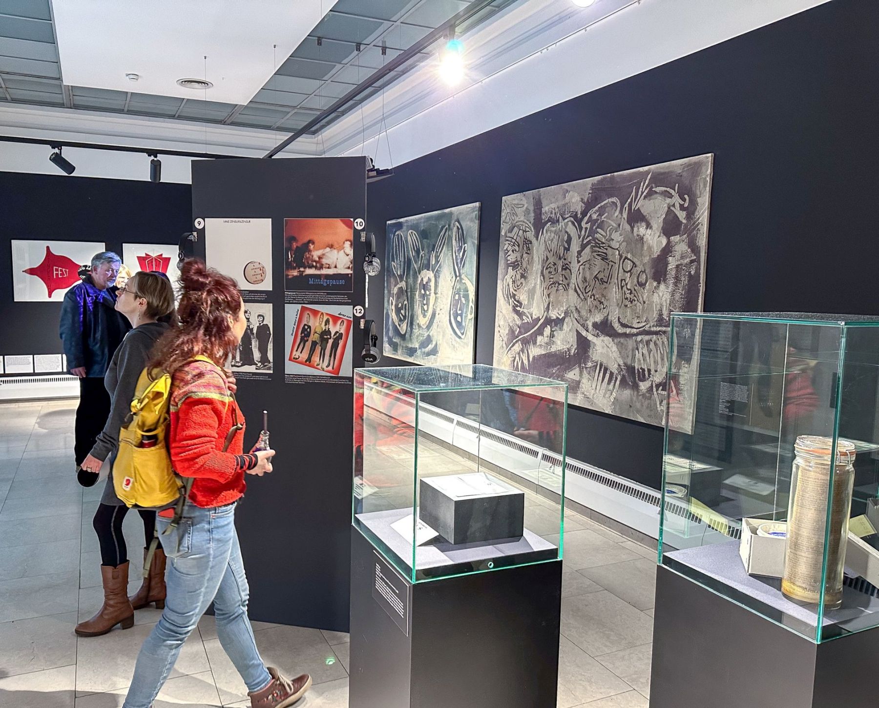 Punk: Wir versprechen nichts!, Städtische Galerie Rosenheim, Blick in Saal 3 (Düsseldorf, Ratinger Hof, Kunstwerke von Joseph Beuys im Vordergrund), Foto © Martin Weiand