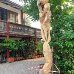 Die meisten der fast 70 ausgestellten Werke – abgesehen von den wunderbaren 32 Originalwerken in der Dauerausstellung im Großen Atelier, darunter ein Wandfresko mit Ehefrau Judith Anna Exter und den Kindern Judith und Karl, sind nach 1902 entstanden, nachdem Exter das frühere Bauernhaus in Feldwies erworben hatte. Immer wieder schön und erholsam ist auch ein Gang durch den „echten“ historischen Garten des Hauses, der jetzt in voller Sommerblüte steht. Er wird von der Leiterin des Exter-Hauses, Monika Kretzmer-Diepold inzwischen seit 45 Jahren, so gestaltet, wie er zu Exters Zeiten aussah, und liebevoll in unzähligen Arbeitsstunden gepflegt.