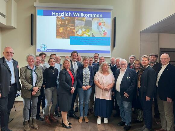 Fachbereichsleitung Monika Poschenrieder (4. v.r.) und Fritz Kühner (1.v.r.), Delegierte der Fachbereichsversammlung, Referenten und Dr. Thomas Geppert (5 v.l.) sowie Daniela Ziegler (4. v.l.) vom DEHOGA Bayern.