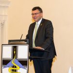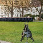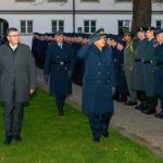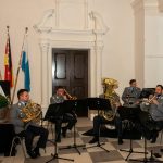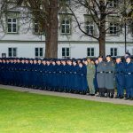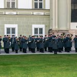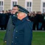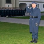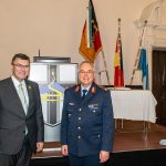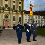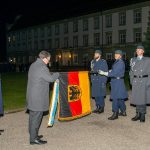 Staatsminister für Bundes- und Europaangelegenheiten und Medien Dr. Florian Herrmann verleiht bei einem feierlichen Appell im Innenhof von Kloster Fürstenfeld das Fahnenband des Bayerischen Ministerpräsidenten an das Zentrum für Luft – und Raumfahrtmedizin der Luftwaffe.