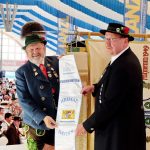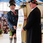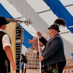 “100 Jahre Freistaat Bayern” ist für die Bayerische Staatsregierung Anlass, denn heurigen Gaufest-Vereinen ein Fahnenband zur Erinnerung an dieses Jubiläum zu stiften. Dieses Fahnenband überbrachte beim Gauheimatabend des Donaugaus in Pöttmes im Auftrag von Bayerns Ministerpräsident Dr. Markus Söder der Landesvorsitzende vom Bayerischen Trachtenverband, Max Bertl. Unsere Aufnahme zeigt bei der Übergabe Max Bertl (li.) mit Martin Rupprecht, dem Vorstand des Trachtenvereins Pöttmes.