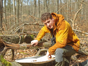 Dr. Simon Thorn gibt Einblicke in das Wirken des Buchdruckers, der Borkenkäferart, die aktuell in ganz Mitteleuropa Fichtenbestände zum Absterben bringt. (Foto: Thorn)