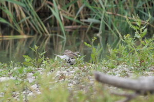 An der Prienmündung wurde nach der Sichtung eines Flussregenpfeiferpärchens die Kiesinsel geschützt. Dies zahlte sich auch gleich aus und man kann derzeit das Familienleben der fünfköpfigen quirligen Flussregenpfeiferfamilie beobachten.