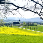 Die Filial- und Wallfahrtskirche St. Marinus und Anian von Wilparting, einem Ortsteil der Gemeinde Irschenbeg im Landkreis Miesbach, zeigt sich in diesen sonnigen April-Tagen dank der gelben Rapsfelder und der dahinterliegenden Bergwelt in einer besonderen Farbenkomposition. Die Katholische Kirche erhebt sich über dem Grab der beiden Heiligen Marinus und Anianus, die kleine Veitskapelle bezeichnet die Stelle, an der sich die Zelle der Heiligen befunden haben soll.