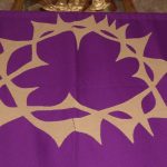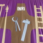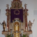 Auf dem mittleren Tuch am Hochaltar sind die Leidenswerkzeuge (auch Passionswerkzeuge, lateinisch Arma Christi, „Waffen Christi“) zu finden. In Brauntönen gehalten erinnern das Kreuz mit dem Titulus crucis (INRI), die zur Kreuzabnahme verwendeten Leitern, Kreuznägel mit Hammer, Zange zur Entfernung der Kreuznägel und die Lanze, mit der ein römischer Soldat Jesus die Seitenwunde zufügte, an das Geschehen am Karfreitag. Sie stehen in direkter Beziehung zum Leiden und Sterben Jesu Christi, ebenso wie die Dornenkrone und das Grabtuch, die auf den beiden Seitenaltären dargestellt sind.