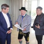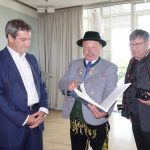 Fotos: Hötzelsperger – Eindrücke von der Übergabe des neuen Buches „Faszination Tracht“ an Bayerns Ministerpräsidenten Dr. Markus Söder durch den Autor Walter Weinzierl (Mi.) und den Fotografen Rainer Nitzsche (re.).