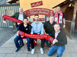 Sven Ulreich seit 2015 Torhüter beim FC Bayern kam nach Aschau zum Fanclub Priental Bayern Aschau Aschaus Zweiter Bürgermeister Michael Andrelang – zweier Vorsitzender Peter Feistl – Sven Ulreich – erster Vorsitzender Toni Huber – Aschaus Tourismuschef Herbert Reiter – Werner Grill, Beisitzer und Moderator (von links)