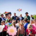 Auf einen wunderbaren Garerenschausommer stimmten mit dem Maskottchen FreYli ein: (v.li.)Bürgermeister Dr. Olaf Heinrich, Magnus König (katholischer Dekan und Stadtpfarrer von Freyung), Jochen Wilde (Dekan des Evangelisch-Lutherischen Dekanats Passau), Gerhard Zäh (Vorsitzender der Bayerischen Landesgartenschaugesellschaft), Ministerpräsident Dr. Markus Söder, Sebastian Gruber (Landrat des Landkreises Freyung-Grafenau) und Thorsten Glauber (Staatsminister für Umwelt und Verbraucherschutz).
