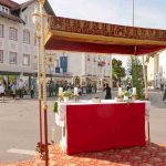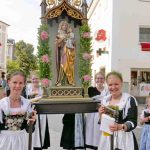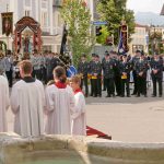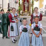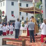„Heute stehen nicht Autos im Mittelpunkt des wunderschönen Marktplatzes von Prien, sondern die bleibende Gegenwart Gottes“ – mit diesen Worten hieß Pfarrvikar Gottfried Grengel die Teilnehmer am Festgottesdienst mit anschließender Prozession durch den Ort am Morgen des Fronleichnamstages in der Priener Ortsmitte willkommen. Zugleich dankte er allen, die mit ihren Ortsvereins-Fahnen sowie mit den Prozessions-Stangen und Prozessions-Figuren (getragen von Dirndln der Trachtenvereine Atzing, Greimharting und Prien) eine wahrlich tragende Rolle übernommen haben. Sein weiterer Dank galt dem großen liturgischen Dienst und allen Leuten, die mitgeholfen haben, die Altäre am Marktplatz, vor dem Rathaus und im Ortsteil Gries herzurichten sowie jenen Hausbesitzern, die ihre Fenster mit den roten Fronleichnamstüchern schmückten. Für die musikalische Gestaltung sorgten der Priener Kirchenchor unter der Leitung von Bartholomäus Prankl sowie die Priener Blaskapelle mit ihrer Dirigentin Regina Huber. Feierlich mit dem Himmel und dem Allerheiligsten, mit den Bürgermeistern, Gemeinderäten und den Indischen Schwestern sowie mit den Abordnungen der Priener Ortsvereine zogen die Gläubigen durch Prien und wieder zurück zum Marktplatz. Ein Gast, der auf den Rollator angewiesen war und nicht mitmarschieren konnte, drückte seine Freude mit folgenden Worten aus: „Dieser Platz in Prien, die feierliche Gestaltung des Gottesdienstes und die farbenfrohe Brauchtumspflege geben einem Freude und Kraft, Danke an alle Priener“. Schon bald werden die Priener wieder guten Grund zum festlichen Feiern haben, wenn ab Donnerstag, 23. Juni (bis Montag, 27. Juni) im Festzelt am Hohertinger Weg das Jubiläum „125 Jahre Markterhebung“ gefeiert wird. Dann wird am Sonntag, 26. Juni ein ökumenischer Fest-Gottesdienst in Trautersdorf um 10 Uhr zu den Höhepunkten des Jubiläums gehören.