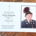 Aufgrund seiner Verdienste über seinen Heimatverein hinaus wurde ihm bereits 1986 vom Chiemgau-Alpenverband das Gauverdienstzeichen in Gold verliehen. So war es eine Ehrensache für den Gauverband an der Trauerfeier mit Standarte und Mitgliedern der Vorstandschaft teilzunehmen. Für den Feldwieser Trachtenverein war der Verstorbene bis zuletzt und auch noch beim heurigen Chiemgauer Trachtenfest in der Feldwies als beratender Trachtenträger dabei. „Stefan war über viele Jahrzehnte hinweg ein fester und verlässlicher Bestandteil unseres Vereins, sein ausgleichendes Wesen wurde von Dirndln und Buam sowie von Frauen und Männern gleichermaßen geschätzt. Er war ein aufmerksamer Beobachter, ein guter Zuhörer und hochgeschätzt, wenn er seine Meinungen kundtat“ – so Marianne Jauernig, die auch noch an den überaus frohen 90. Geburtstag in der Feldwieser Wirtsstube erinnerte und von einem Aktivenpaar einen Blumenkranz im Beisein der Vereins-Fahnenabordnung niederlegten lies. Die Trauerfeier in der Überseer Kirche wurde gestaltet von Pfarrer Korbinian Parzinger, einem Enkel von Stefan Hofmann sowie musikalisch von den Geschwistern Gschossmann und von Ziachspieler Korbinian Hiendl.