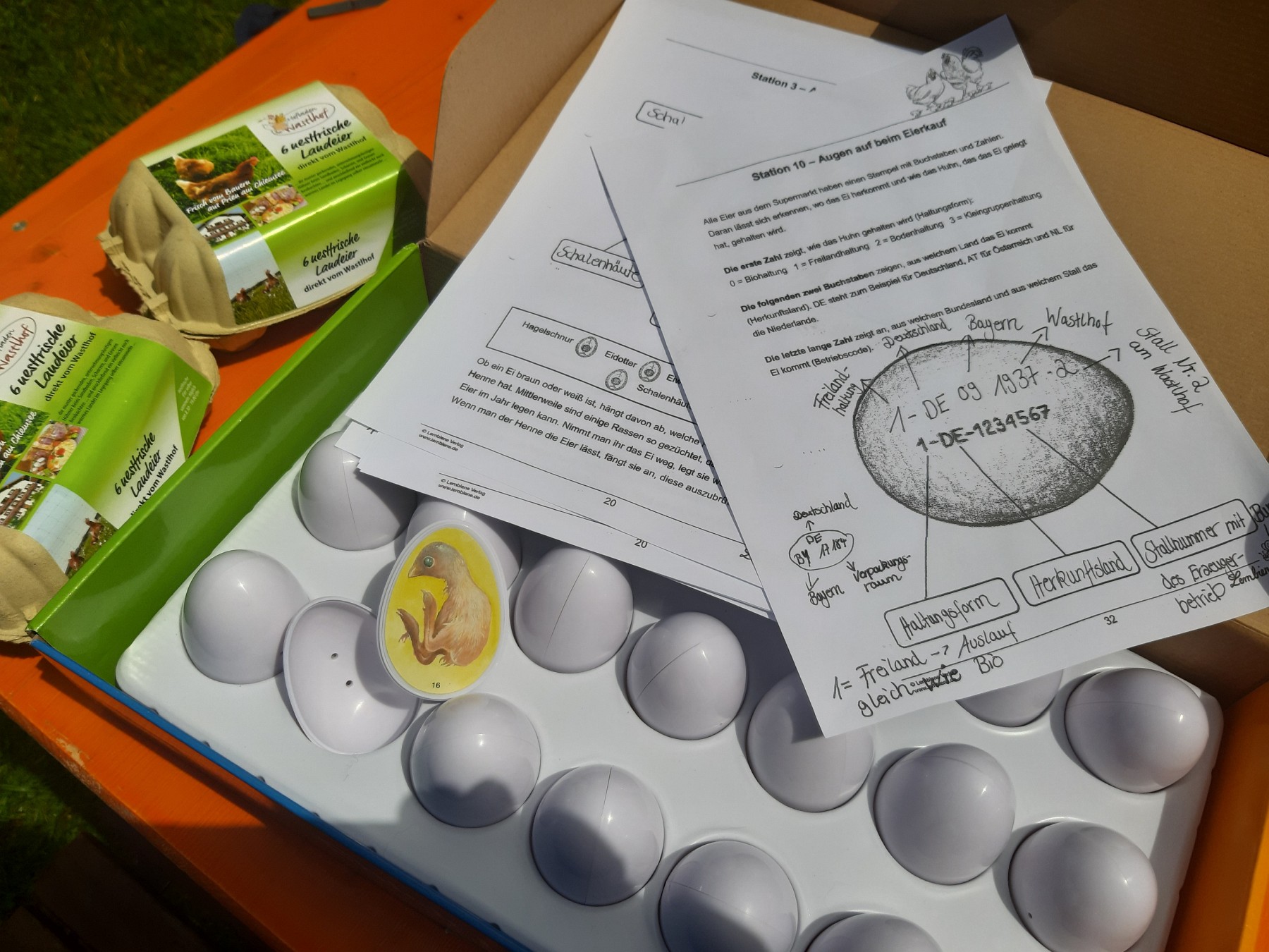 Maria Riepertinger erklärt den Lebenszyklus eines Huhns und die Kennzeichnung von Eiern.