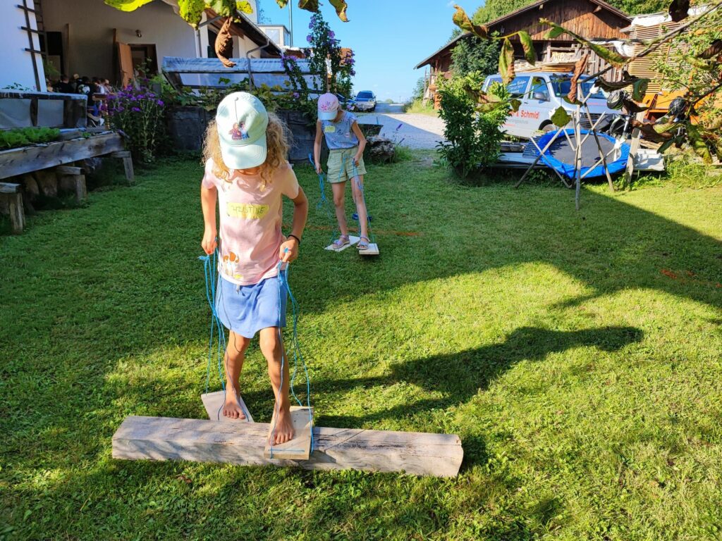 Es war ein ganz schöner und heißer Tag für über 20 Kinder aus Griesstätt und Eiselfing; im Rahmen des Ferienprogramms vom Trachtenverein Griesstätt hatten sich die vier Jugendleiter Kaiser Claudia und Hans, Schuster Franz und Kalhammer Markus einen tollen Parcours mit 15 Stationen ausgedacht, bei dem es um Geschicklichkeit, Schnelligkeit aber auch um Schätzen, Riechen, Wissen und Erkennen ging. Los gings mit „Hulla Hup“, dann musste mit selbst gebastelten „Schneeschuhen“ geschickt ein Parcour durchlaufen werden, dann hieß es „Riechen und Erkennen“ von Kräutern u. ähnlichem (wie riecht z. B. Curry?), drauf musste Geschick beim „Flechten“ bewiesen werden. Jetzt schnell runter zum „Kegeln“ um möglichst viele umzuwerfen. Sehr interessant und aufschlussreich war es bei der „Baumkunde“: Erkennen der Bäume anhand der Blätter (Fichte oder Tanne, Eiche, Linde oder doch Haselnuss etc.).