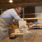 FLM_Glentleiten_Sauer_Schreinerei.jpg: Einmal selbst die Säge in die Hand nehmen? Das dürfen Kinder an der Glentleiten bei der Vorführung in der Schreinerei.
