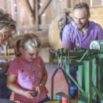 Die Museumspädagoginnen Beate Lohner und Sophie Ruhl haben ein vielfältiges Programm zusammengestellt. Es enthält vor allem offene Angebote, bei denen man einfach vorbeikommen und mitmachen kann, dadurch lässt sich der Museumsbesuch für Familien flexibel gestalten. Bei vielen Handwerksvorführungen ist beispielsweise die Mithilfe der Kinder gefragt – egal ob in der Seilerei, wenn es gilt, einen Kälberstrick zu drehen, bei der Filzerin, die Unterstützung beim Filzen bunter Schnüre braucht, oder beim Schreiner, der sich freut, wenn Mädchen und Buben kleine Tierfiguren sägen und glatt schmirgeln. Auch beim Schablonieren, einer alten Technik zum Verzieren von Wänden, kann mitgewerkelt und Schablonenmalerei auf einer Postkarte ausprobiert werden. Es gibt außerdem zwei Nachmittage rund um Wolle (1.8. und 5.9.), bei denen alle ab 6 Jahren verschiedene textile Techniken lernen können – etwa Kordeln drehen oder mit der Handspindel spinnen. Am 12.8. steht die „große Wäsche“ ins Haus, da muss Wasser zum Schäumen gebracht, auf dem Waschbrett geschrubbt, ein Wäscheseil gedreht und Wäscheklammern gebastelt werden. Für all diese beispielhaft genannten Angebote ist keine Anmeldung erforderlich.
