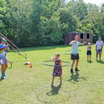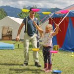 Trotz teilweise verregnetem Wetter in der ersten Woche hatten die Kinder bei den unterschiedlichsten Aktivitäten viel Spaß: neben den Bastel-, Spiel- und Sportangeboten in den Kleingruppen gab es am Mittwochnachmittag den Wettkampf „Klein gegen Groß“ (angelehnt an das bekannte Fernsehformat), bei dem die Kinder gegen ihre Gruppenleitungen in den unterschiedlichsten Disziplinen wie Sackhüpfen, Staffellauf, Hula-Hoop-Reifen drehen oder Diabolo antraten und natürlich meist gewinnen konnten. Als Abschluss der ersten Woche fand am Freitagnachmittag eine Zirkusvorstellung statt, bei der die Kinder ihre einstudierten akrobatischen Höchstleistungen zeigen konnten. In der zweiten Woche sorgte viel Sonnenschein für wärmere Temperaturen. Nun konnte endlich mit der heiß ersehnten Schnitzeljagd gestartet werden, die die Gruppen über den Zeltplatz und in den nahen Wald führte. Am Ende der zweiten Woche gab es noch eine Großveranstaltung, bei der jede Kleingruppe verschiedene Spielchen bewältigen musste, die von Einzeldarbietungen einzelner Kinder umrahmt wurden.