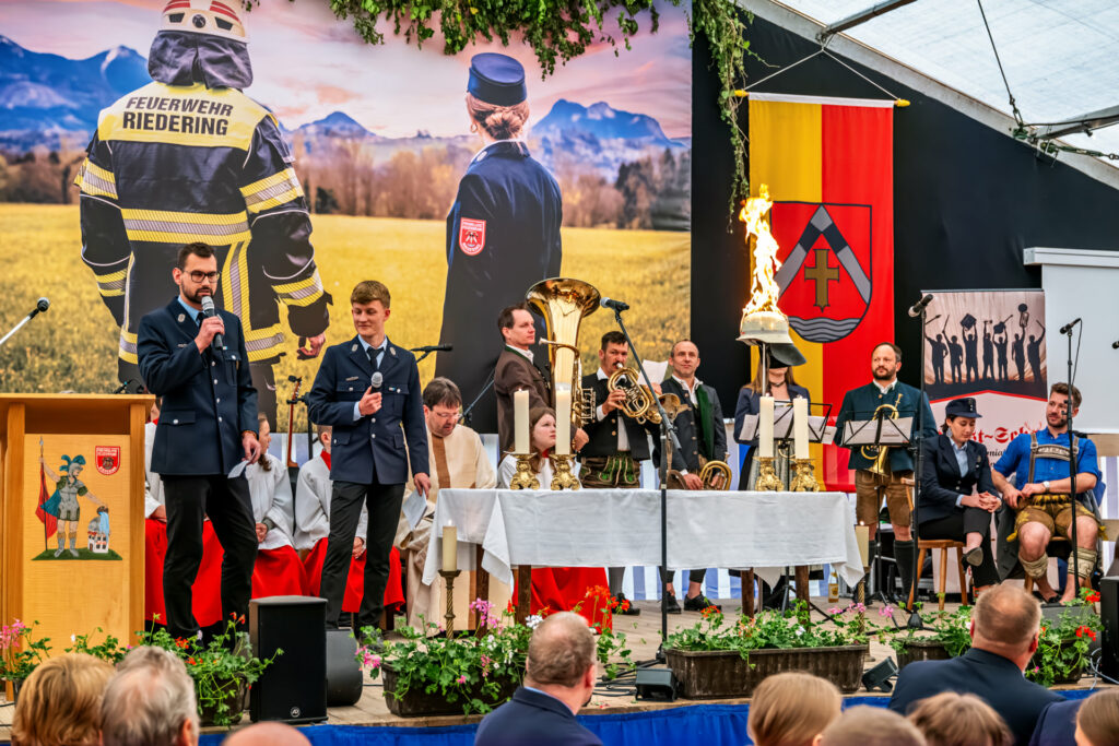 Mit einem bewegenden Festsonntag feierte die Freiwillige Feuerwehr Riedering ihr 150-jähriges Bestehen. In einem festlich geschmückten Zelt versammelten sich zahlreiche Ortsfeuerwehren aus dem gesamten Chiemgau sowie viele Ehrengäste und Bürgerinnen und Bürger aus der Gemeinde, um gemeinsam diesen besonderen Jubiläumstag zu begehen.