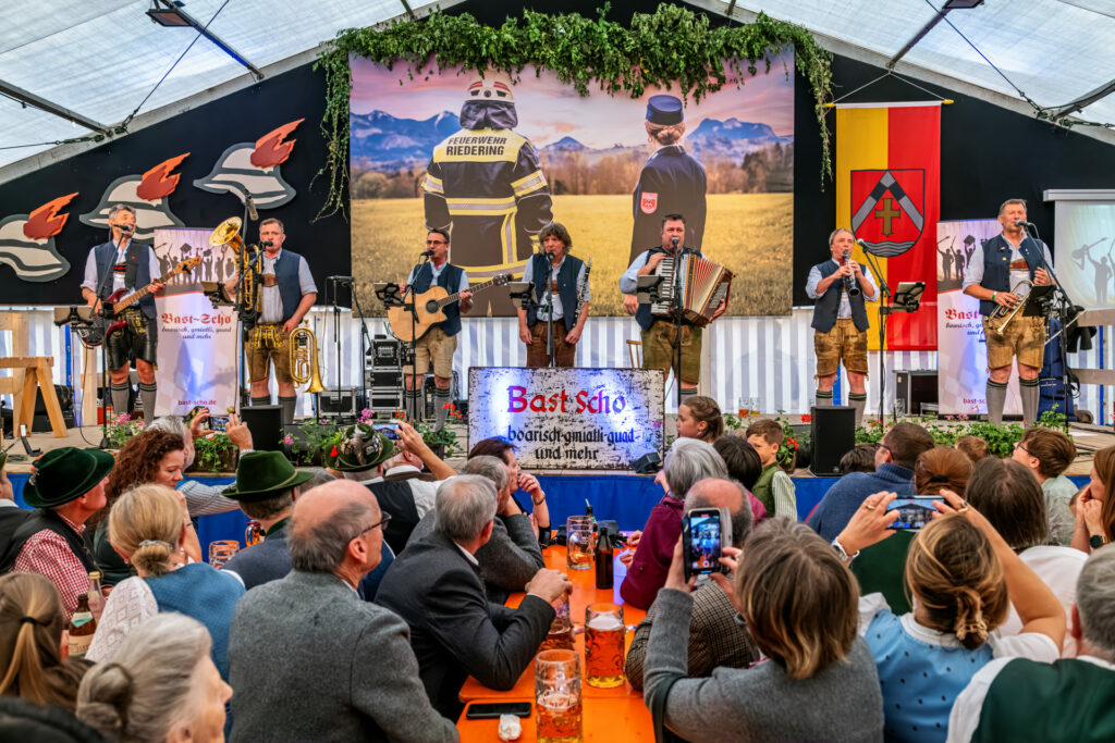 25 Jahre „Bast Scho!“ – Die Kultband aus dem Alpenvorland feierte ihr Bühnenjubiläum mit einem mitreißenden Auftritt im voll besetzten Riederinger Festzelt. Bayerisch, gwandt, guad – und bestens gelaunt! Die Jubiläums-Show der beliebten Band ließ im Festzelt kein Maß voll und keine Bank leer.