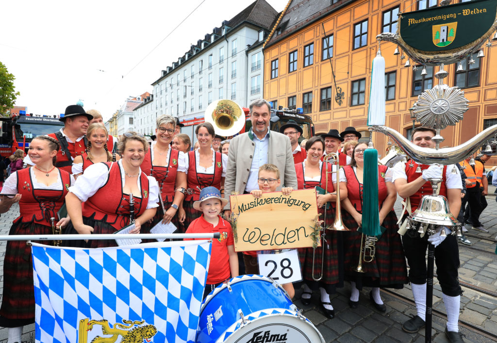 Markus Söder, bayerischer Ministerpräsident, bei der Eröffnung des Augsburger Plärrers. Foto: Karl-Josef Hildenbrand/
