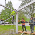 Bei strömenden Regen stellten die Mitglieder der Freiwilligen Feuerwehr Söchtenau das 1200-Mann-Zellt am Söchtenauer Sportgelände für die 150-Jahr-Feier des Vereins auf. Bürgermeister Bernhard Summerer stellte bei seiner Stippvisite schmunzelnd fest, dass er als Schirmherr noch kräftig üben müsse, damit es dann während der Festwoche endlich schönes Wetter gäbe.