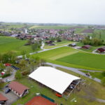 Bericht und Bilder: Norbert Zehrer/Feuerwehr Söchtenau – Aufbau des Festzeltes mit Aufnahme einer Drohne und Aufbau am Boden bei Regen