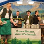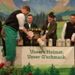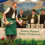 Bericht und Fotos: Heinrich Rehberg – Bürgermeister Simon Frank, die Wirtsfamilie Heinrichsberger und die Vertreter der Auer-Brauerei aus Rosenheim stoßen miteinander auf das Gelingen des Aschauer Marktes an.