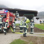 „Brand im Gastronomiebereich des ehemaligen Hallenbads, der sich auch auf die Kellerräume ausgebreitet hat, alle Innenräume stark verraucht, mehrere Personen vermisst.“ So lautete das Szenario bei einer Gemeinschaftsübung der Freiwilligen Feuerwehren Reit im Winkl, Oberwössen und Kössen in Reit im Winkl.