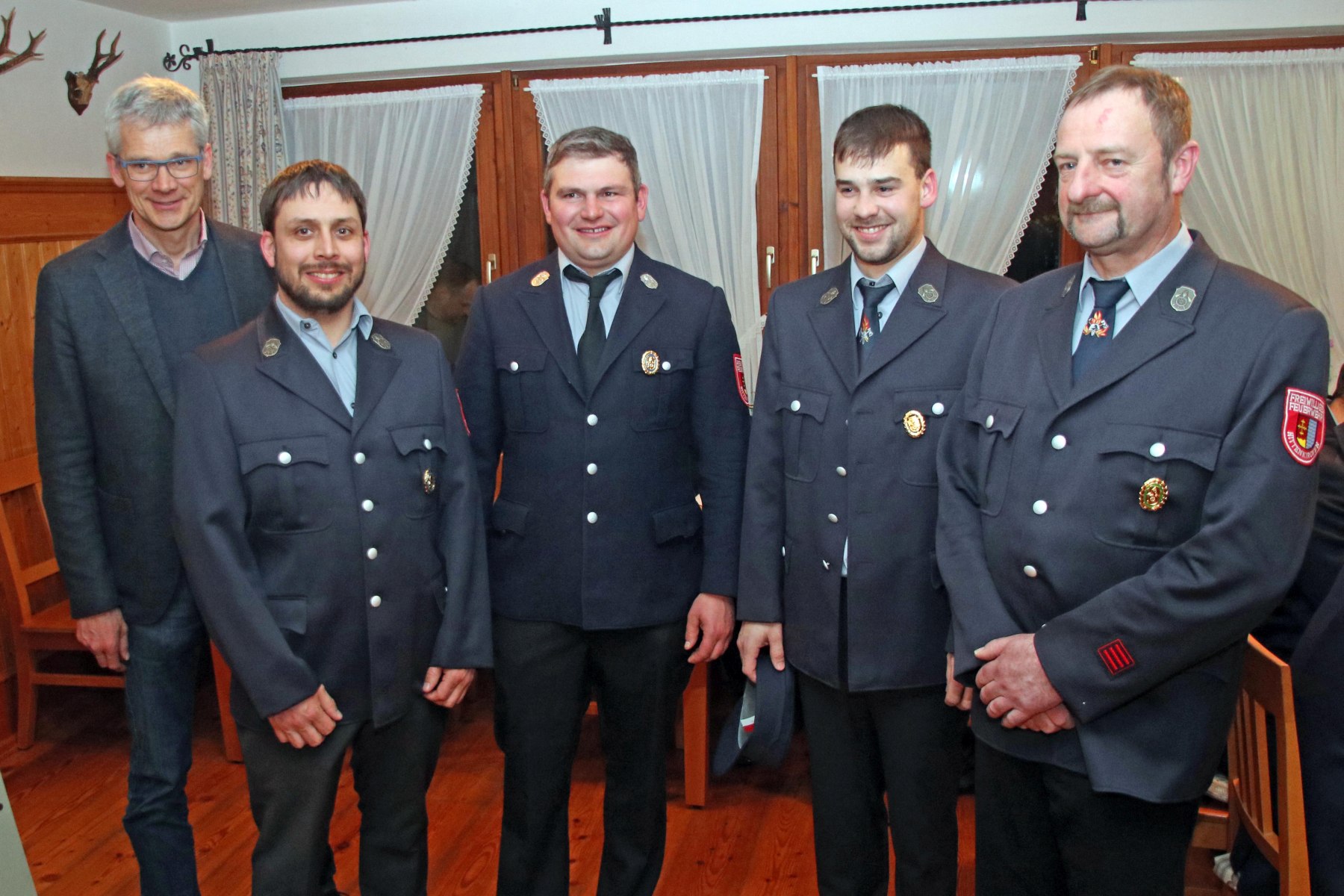 neue Vorstandschaft: Bürgermeister Bernhofer, Schriftführer Sebastian Summerer, 2. Vorstand Sebastian Scheck, Kassier Christian Moosmüller und 1. Vorstand Anton Forstner