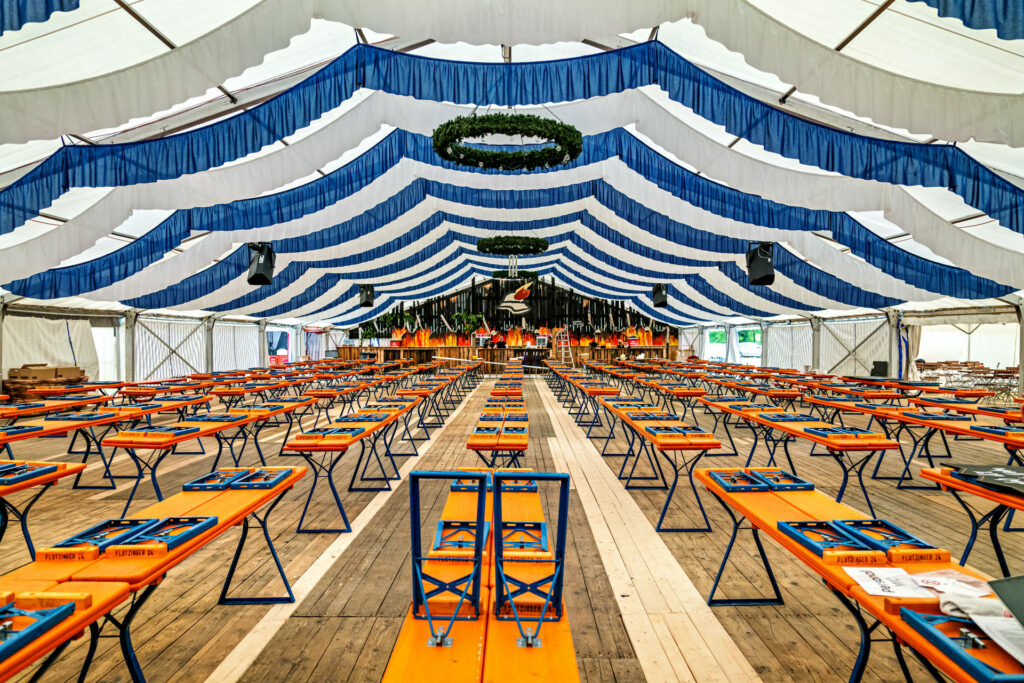 Letzte Vorbereitungen im Festzelt – die Bänke stehen bereit, die Bühne ist geschmückt, der Countdown läuft: Ab morgen wird hier das 150-jährige Jubiläum der Feuerwehr Riedering gefeiert – mit Musik, Gemeinschaft und gelebter Tradition.