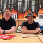 Festleiter Georg Staber (links) und der 2. Kommandant der Feuerwehr Riedering, Korbinian Schmitzberger (rechts), sorgen mit viel Engagement und guter Laune dafür, dass zum 150-jährigen Jubiläum der Feuerwehr im Festzelt alles perfekt vorbereitet ist.