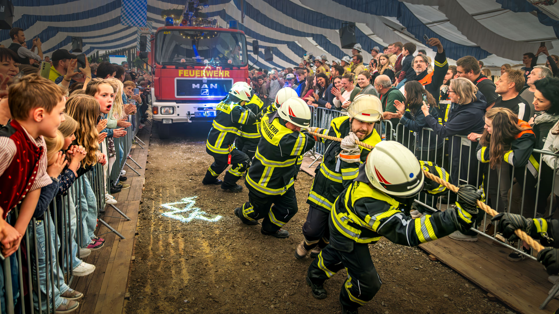 Muskelkraft, Kameradschaft und Jubelstimmung: Fire-Truck-Pulling in Riedering begeistert Publikum aus nah und fern