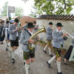 Foto 1 (mmü):  Zu Beginn des traditionellen Fischerjahrtages der Fischereigenossenschaft Chiemsee auf der Fraueninsel bewegte sich der Kirchenzug zur Klosterkirche. Den von der Blaskapelle Prien untermalten Gottesdienst zelebrierte der Pfarrer Andreas Przybylski. Die Blasmusikanten untermalten auch die Messe und die anschließende Versammlung.