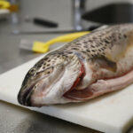 Auch Produkte aus der bayerischen Seenfischerei und der heimischen Teichwirtschaft enthalten diese wichtigen Fettsäuren in erheblichem Umfang. Deshalb greifen viele Verbraucherinnen und Verbraucher zu regionalen Erzeugnissen. In Deutschland und gerade in Bayern produzieren Teichwirte jedes Jahr mehrere Tausend Tonnen Karpfen, Forellen und Saiblinge. Neben diesen traditionell erzeugten Fischarten werden in Deutschland aber auch „Exoten“, wie Afrikanische Welse oder Shrimps, in Kreislaufanlagen aufgezogen. An die Stelle von Lachsfilets aus Norwegen kann Lachsforelle aus bayerischer Teichwirtschaft treten, Fischstäbchen können mit grätenfreien Fischfilets aus Karpfen, Weißfischen oder Welsen ersetzt werden. Fische haben als Teil des Körperskeletts Gräten, die Gräten im Fischfleisch lassen sich allerdings durch professionelles Filetieren und Zuschneiden entfernen. Fischgenuss gibt es also auch grätenfrei, genau das zeigt der Fischverarbeitungskurs.