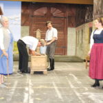 Bericht und Fotos: Volkhard Steffenhagen – Ein stimmungsvoller Probenmoment: Die Schauspieler des Volkstheaters Flintsbach stehen bereits geschminkt und in historischer Kostümierung vor der liebevoll gestalteten Kulisse von „Madame Bäuerin“.