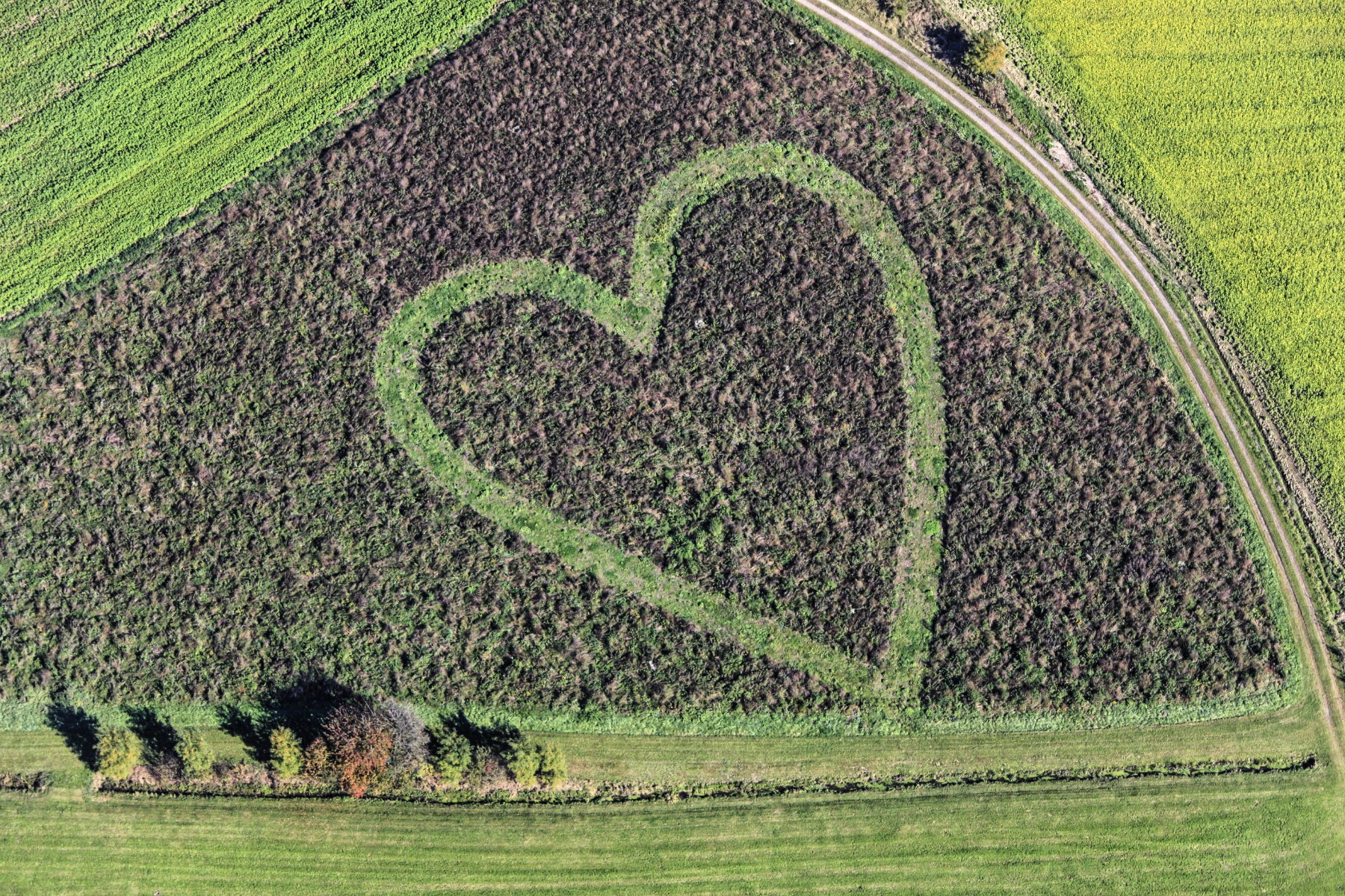 Luftaufnahme von einem Herz im Acker, bis zum 01.06.2019 über 2,8 Millionen mal aufgerufen bei https://www.flickr.com/photos/leidorf/6265579314