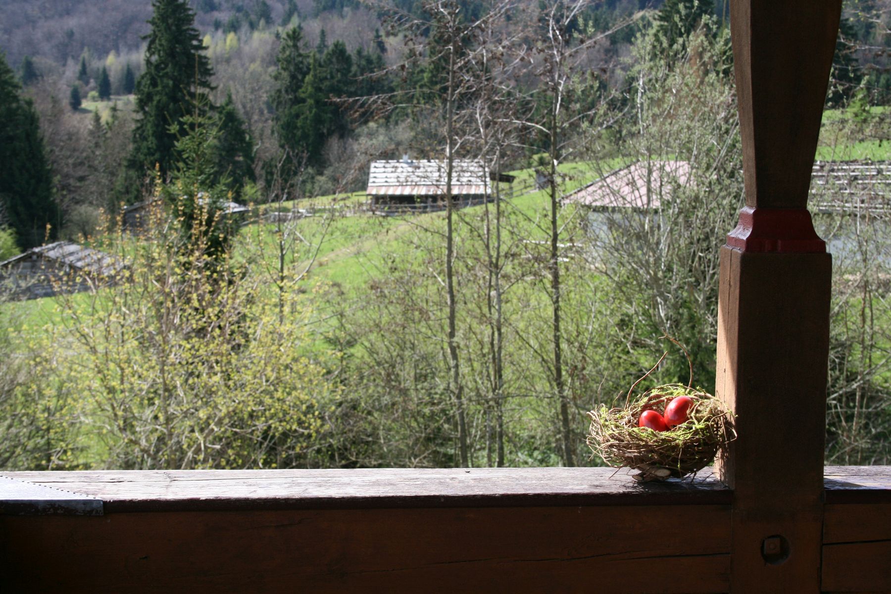 Anstelle von echten Eiern versteckt der Glentleitner Osterhase kleine Holzkäfer. Echte Eier gibt’s dann beim Tausch! Bildquelle: Bezirk Oberbayern, FLM Glentleiten, Foto: Inanger.