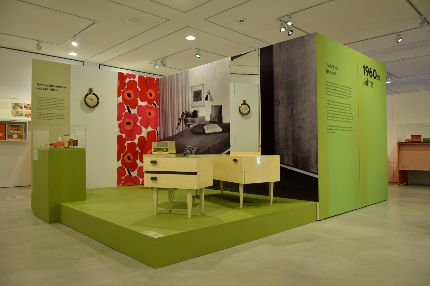 Die 1960er Jahre in Groß und Klein: Die Ausstellung kombiniert Puppenmöbel mit lebensgroßen Rauminstallationen. Bildquelle: Bezirk Oberbayern, FLM Glentleiten, Foto: Bauer