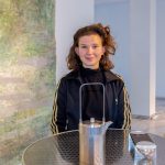 Ein weiterer mit 2.500 Euro dotierter Preis ging an die Produkt- und Glasdesignerin Lotte Schlör für die Glasserien „moon“ und „edge“. Die gelernte Porzellanmalerin erwarb ihren Bachelor in Industriedesign an der Kunsthochschule Burg Giebichenstein im Fachbereich Keramik und Glasdesign. Die Serie „edge“ mit sieben weißen mundgeblasenen Glaskörpern spielt mit der Formbarkeit des Materials. Die Serie erscheint wie eine Familie, jedes Glas hat seine Individualität und offenbart gleichzeitig die Verwandtschaft. In der Serie „moon“ zeigt die Künstlerin vier Schalen aus zwei unterschiedlich großen übereinanderliegenden Glas-Elementen, die gegeneinander verschiebbar sind.