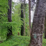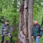 Bericht und Foto: Amt für Landwirtschaft –  Forstdirektor Marius Benner (l.) mit dem Leiter der Fachstelle für Waldnaturschutz Oberbayern, Forstrat Christoph Meder-Hokamp (r.), vor einer für Insekten, Vögel und Pilze besonders wertvollen Rotbuche