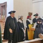 Ihr zur Seite standen drei Trachtenvereine aus dem Landkreis Main-Spessart: Die Trachtengruppe Karlstadt, die Trachtengruppe Glasofen und die Freunde fränkischen Brauchtums aus Urspringen. Zu Beginn zogen die Trachtlerinnen und Trachtler zum auf der Orgel gespielten “Frankenlied” in das Gotteshaus ein. Dabei konnten sich die zahlreichen Besucher bereits einen ersten Eindruck von den bunten Trachten machen. Nach den einführenden Gedanken folgten Kyrie und Psalm, vorgetragen in fränkischer Mundart.