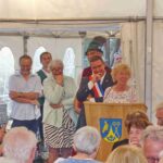 Und ein besonderer Tag war es auch für Priens Ersten Bürgermeister Andreas Friedrich. Er sagte bei der Kunstwerk-Enthüllung: „Das Wochenende mit dem Besuch aus Graulhet ist ein Zeichen der Freundschaft zwischen Orten und Menschen, es soll ein Band in die Zukunft sein, denn Freundschaft über 50 Jahre mit Hunderten von persönlichen Gesprächen und Kontakten sollen nicht vergebens sein. Lasst uns die verschwundenen Grenzen dienen lassen, dass im gesamten Europa Frieden in die Herzen der Leute eindringt“. Auch sein Graulheter Kollege stimmte dem zu als er in seinem Grußwort das gerade vorgestellte Fresko als Hymne der Hoffnung bezeichnete und sagte dazu: „Gemeinsame Werte, zusammengehören und zusammen teilen, die Jugend einbinden, das soll weiterhin unserer Zukunft helfen, Ehrenamt und Freiwilligkeit sind dabei unsere Freunde“.