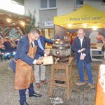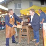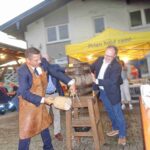 Ein besonderer Tag war es auch für Graulhets Ersten Bürgermeister Blaise Aznar – er durfte wohl das zweite Mal in seiner Amtszeit ein Fass Bier anstechen, das erste auf bayerischem Boden, denn das allererste war im Vorjahr beim Jubiläumsbesuch der Priener in Graulhet. Wie ungewohnt ein für bayerische Anzapfer fast normaler Vorgang ist, zeigte sich beim Anzapfen. Dass es gelang, war das Wichtigste, die Anzahl der Schläge und der geringe Verlust an Gerstensaft waren nebensächlich. Letztlich gab es ein gemeinsames, der Brüderlichkeit dienendes Prosit.