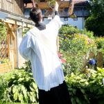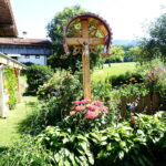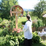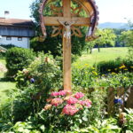 Auch der Standort wurde zuvor gut überlegt und ausgesucht. Nun steht dieses Kleinod gegenüber dem Haus, am Eingang zum Bauerngarten mit der herrlichen Blütenpracht. Ein schöner Standort, passend auch zu dem üppigen Blumenschmuck am Haus. In die gesamte Planung und Gestaltung war auch Familie Osterhammer mit eingebunden. Höhepunkt war dann die Kreuzsegnung am 1. Juli, einem absolut sonnigen Sommertag, einen Tag vor dem Fest Maria Heimsuchung.