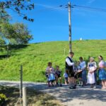 Bericht und Bild: Rupert Wörndl, Heimat- und Kulturverein Frasdorf – Die Taurer nach der Segnung des Kreuzes durch Pfarrer Georg Hartmann (rechts vom Kreuz, in Lederhose), links daneben Paul Panzer (direkt unter dem Kreuz)