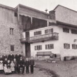 3: Neubau des „Steinhofes“ in Laiming. Der rückwärtige Teil der Tenne sowie die Westhälfte des Wohnhauses sind bereits neu gebaut. Im Vordergrund die Steinfamilie. Foto von ca. 1910.